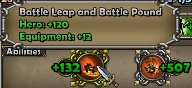 Battle Leap and Battle Pound benefit from the same stat: Ability 1. The damage both abilities inflict also depend on the Barbarian's weapons and his Hero Damage.
