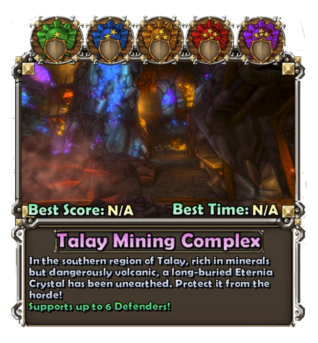 The Talay Mining Complex map was released on 31 May 2012, as part of the Talay Mining Complex Mission Pack DLC. The map is a deep, underground mining complex rich in Eternia Crystals but constantly plagued by its dangerous volcanic activity.